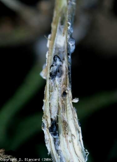 Du mycélium plus ou moins cotonneux et blanc se forme sur les tissus affectés. On observe, sur la tige mais aussi dans la moelle qui est entièrement décomposée et évidée, des sclérotes qui permettent de différencier ces deux Sclerotinia spp. :