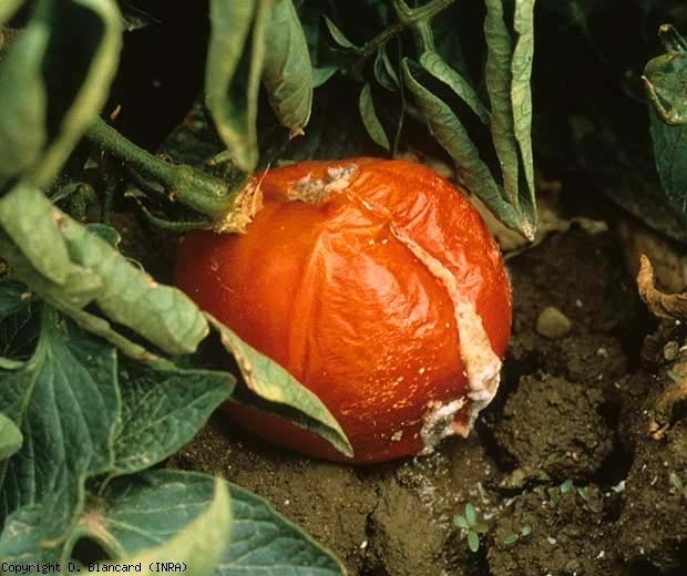 Il produit des lésions humides et graisseuses apparaissant au niveau de blessures ou de la cicatrice pédonculaire des fruits. Ces lésions évoluent rapidement sur les fruits matures, dont l'épiderme finit par se fendre, occasionnant des écoulements de jus. Un mucus blanchâtre et dense recouvre parfois localement les tissus (figure 1); il correspond au développement de colonies de G. candidum. Au sein de ces dernières, du mycélium cloisonné portant des arthrospores en chaîne finissant par se désarticuler sont aisément observables au microscope photonique figure 2).