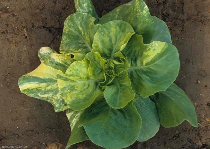 Des symptômes de plusieurs viroses ont été intégrés dans cette partie. Les risques de confusions entre virus étant importants sur salade, nous vous conseillons donc de faire réaliser un test sérologique ou moléculaire par un laboratoire spécialisé, afin d'identifier avec certitude le ou les virus responsables.