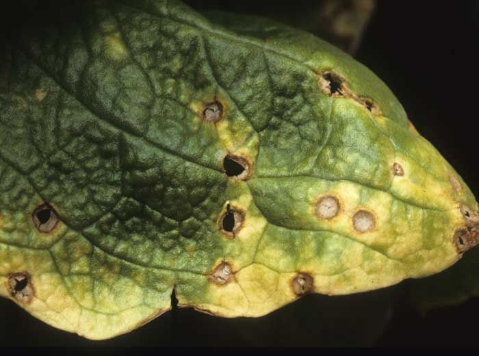 Lors d'une attaque parasitaire, les feuilles de la salade peuvent présenter des anomalies. Les figures 1 et 2 permettent de mieux appréhender l'observation d'un système foliaire ainsi altéré.