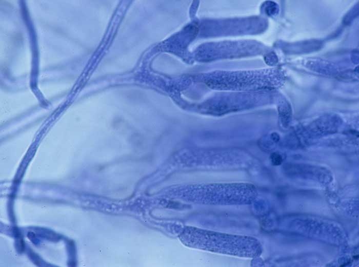 Ces champignons pénètrent directement dans les tissus épidermiques ou passent par l'intermédiaire de blessures. Ils envahissent rapidement les tissus, grâce à l'action conjuguée de diverses enzymes pectinolytiques et cellulolytiques et progressent entre et dans les cellules (figure 7). Des sporanges, des oospores se forment à l'intérieur des tissus ou à leur surface.