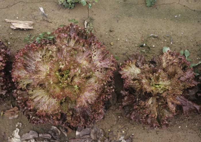 Microdochium panattonianum est le champignon responsable de l'anthracnose. Il est à l'origine de taches se développant en particulier sur les feuilles basses des salades, à la fois sur le limbe et les nervures. Les portions du limbe affectées brunissent assez vite, se nécrosent et tombent. Les feuilles montrent alors de nombreuses perforations leur conférant un aspect criblé très caractéristique (figures 1 et 2). Ce symptôme est dénommé "Shot hole" par les Anglo-Saxons.