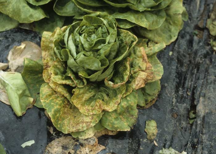 Le LRNA est transmis par un champignon du sol : Olpidium virulentus (ex Olpidium brassicae). Il n'affecte que les laitues cultivées en hiver sous abris. Les sols lourds, mal drainés et froids, favorisent le développement du champignon vecteur et l'expression des symptômes de cette virose. Il n'est pas rare d'observer cette dernière dans des parcelles atteintes par la maladie des grosses nervures (MLBVV). Leurs symptômes respectifs étant très différents, les confusions de diagnostic ne sont pas possibles (voir aussi les liens Virus des grosses nervures de la laitue (MLBVV) et Agent des anneaux nécrotiques de la laitue (LRNA)). Il n'en est pas de même avec la mosaïque jaune du pissenlit (DaYMV). Cette virose transmise par les pucerons provoque, en conditions hivernales, un rabougrissement des plantes, accompagné de jaunissements foliaires (figure 5). L'incidence de cette virose à cette période de l'année est assez mal connue, ce virus n'ayant été détecté en France qu'assez récemment (voir le lien Virus de la mosaïque jaune du pissenlit).
