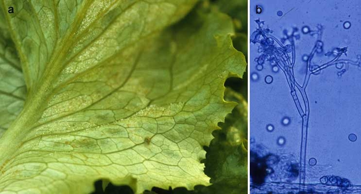 Attention : bien que de nombreuses variétés de laitues soient résistantes à B. lactucae, des souches capables de contourner ces résistances (des races) sont présentes sur le terrain et en perpétuelle évolution. Des symptômes de mildiou peuvent donc être observés sur un tel matériel végétal.