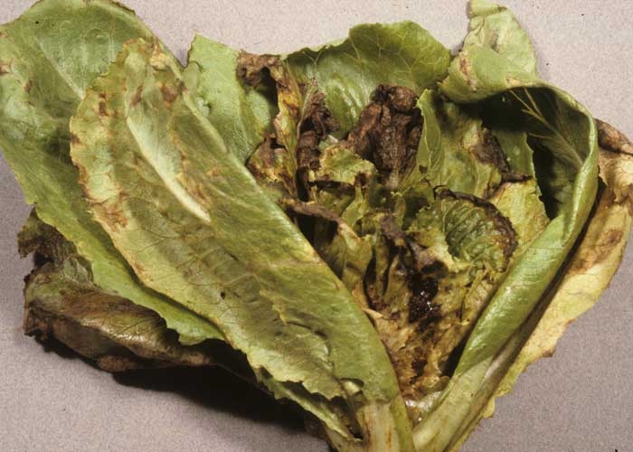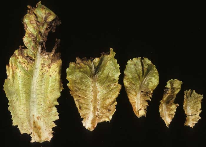 de symptômes nécrotiques sur feuilles de salade