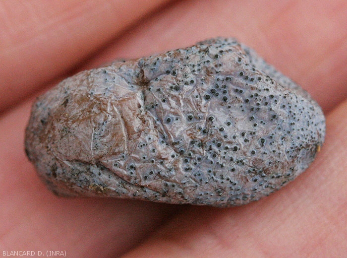 Quels que soient les organes affectés, des ponctuations noires, des pycnides, peuvent être observées dans les tissus lésés et dans l'épiderme des bois blanchis.