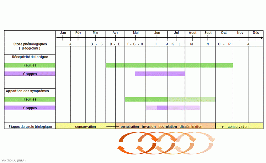 L'oïdium est une maladie polycyclique : plusieurs cycles asexués se succèdent durant la période de végétation de la vigne.