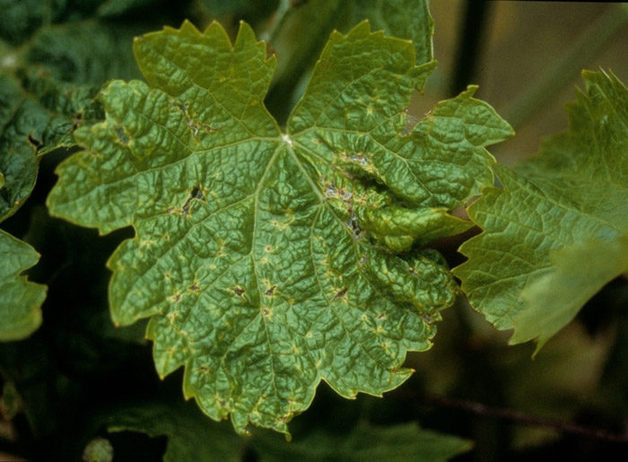 Lors de l'application de pesticides sur vigne, il arrive parfois que les pressions mises en oeuvre pour pulvériser ces derniers soient momentanément trop importantes. Les jeunes et tendres folioles ayant subi de telles pressions peuvent se retrouver plus ou moins criblées, voire déchiquetées.