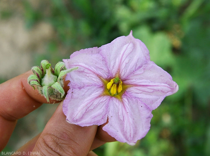 • Les sépales, dont les nervures prennent une coloration violacée, restent complètement joints et le calice est hypertrophié (big bud) (figure 3) ;