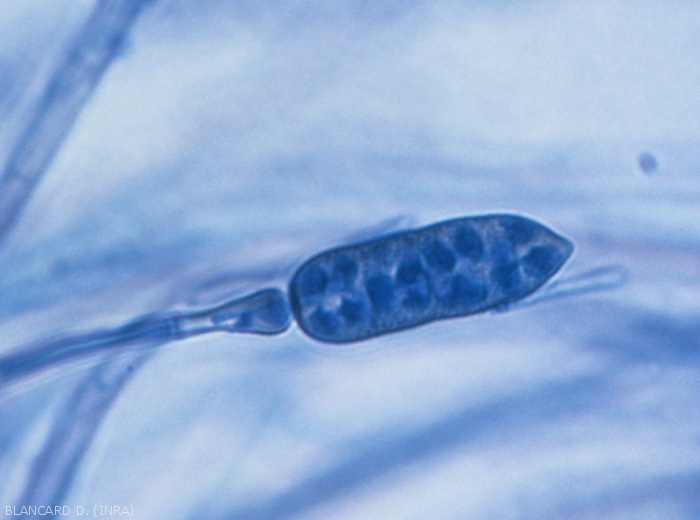 Dissémination : par les conidies surtout par le vent, les courants d'air, mais aussi par les éclaboussures d'eau consécutives aux pluies ou aux irrigations par aspersion. Rappelons que les plants peuvent transmettre la maladie si des infections ont lieu en pépinière.