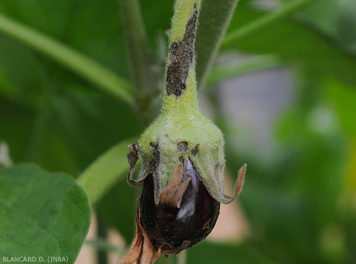 • Destruction d'inflorescences, lésions brunes sur pétioles et sépales.