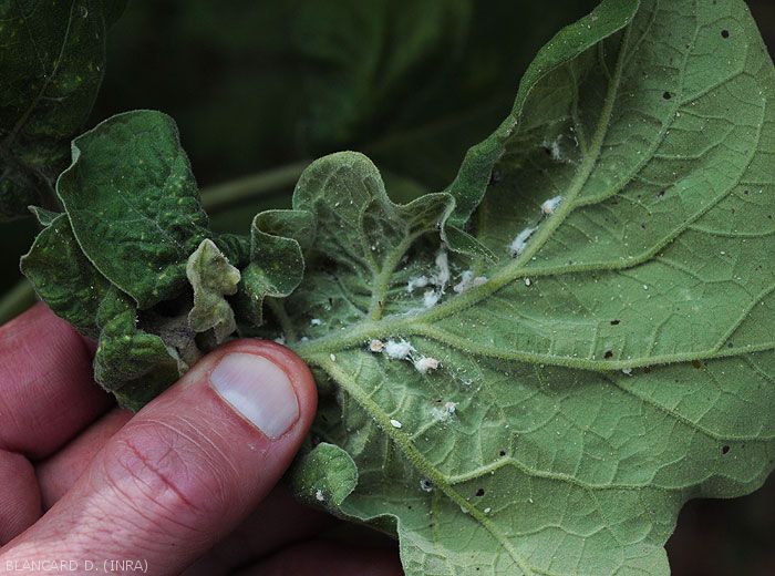 Signes: Présence de larves et d'adultes sur les organes affectés (figures ).