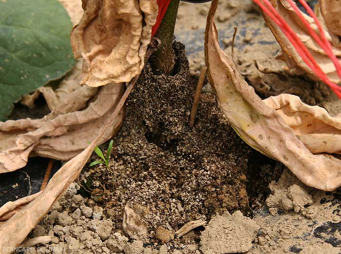 Organes attaqués: collet, tige à proximité du sol, fruits.