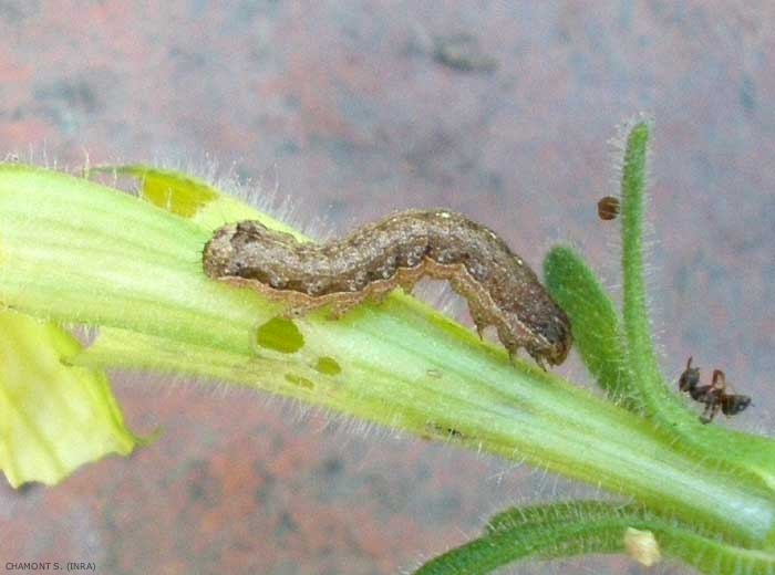Les larves de Noctuidae sont de type éruciforme. Elles se caractérisent par un épiderme généralement lisse presque glabre. Les soies présentes sont courtes et insérées isolément sur le tégument. La tête est bien développée avec des mandibules robustes.