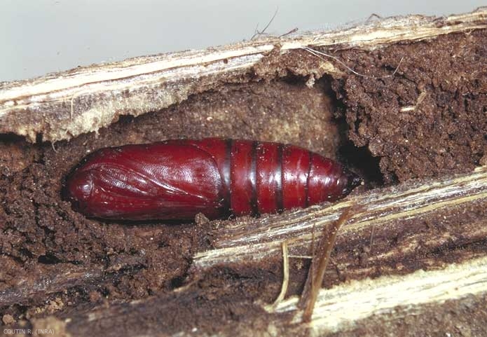 On les trouve le plus souvent enfouies dans une logette souterraine généralement sans cocon soyeux (figure 4). Cependant, chez certaines espèces, la nymphose se produit dans un fin cocon fixé sur un organe épigé de la plante hôte.