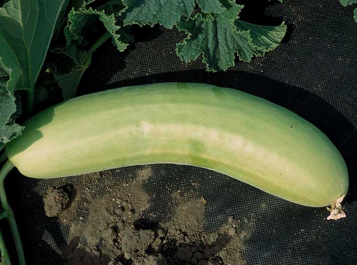- Fruits allongés à épiderme lisse de couleur uniforme verte.