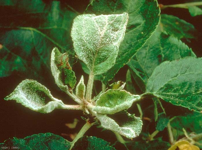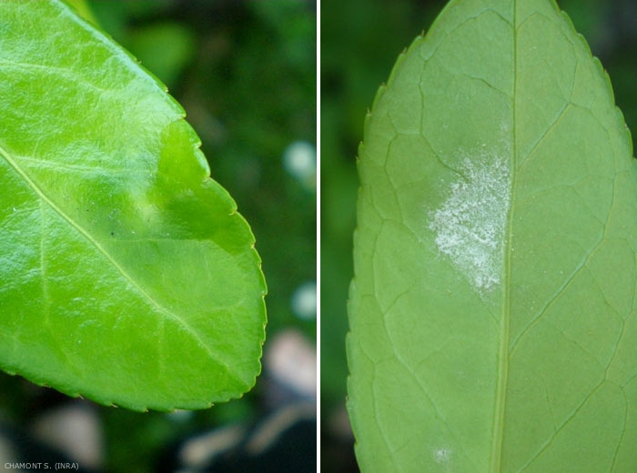 Les oïdium (powdery mildew) appartiennent aux léotiomycètes, ils produisent des ascospores dans des périthèces sphériques et clos, les cléistothèces (figures) ou les chasmothèces. Ces champignons sont facilement reconnaissables par l'aspect poudreux et blanc qu'ils donnent aux feuilles contaminées d'où le nom de blanc donné à la maladie (figures).