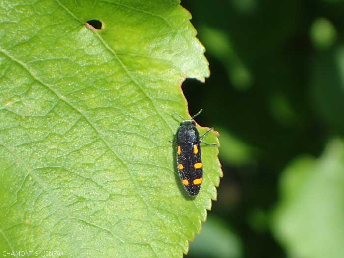 Ptosima undecimmaculata (ptosime à taches jaunes) est un parasite des Prunus (figure 2).