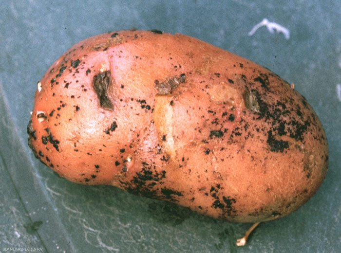 La gangrène (Boeremia foveata, anc. Phoma exigua var. foveata et P. exigua var. exigua), la pourriture sèche causée par des fusarioses (Fusarium coeruleum et F. sulphureum, figure 2) et les pourritures bactériennes occasionnent en cours de conservation des pertes plus ou moins graves.
