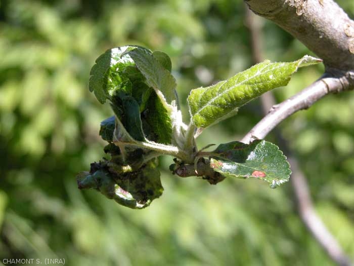 Ce puceron n'est nuisible qu'au pommier ; la plante-hôte secondaire est le plantain, notamment Plantago lanceolata.