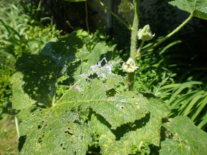 - miellat (figure 2) : excréments liquides, riches en sucres et en acides aminés, des hémiptères, déposés sur les feuilles ou projetés par les pattes postérieures. Le miellat brûle les feuilles, qui souffrent par ailleurs de la diminution de leur photosynthèse due au développement de la fumagine.
