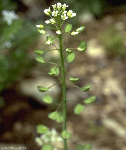 Fruits : silicules ovales en coin, peu atténuées à la base, largement ailées et échancrées, au pédoncule à peu près perpendiculaire à la tige qui les porte ; style très court, inclus.