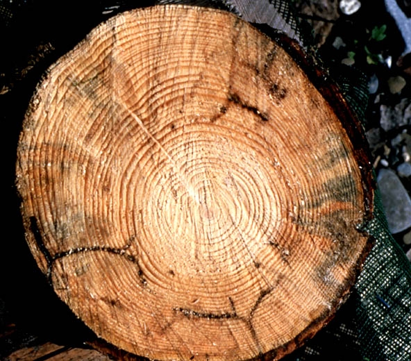 - Les troncs de faible diamètre (15 cm) se trouvent parfois atteints jusqu'au cœur