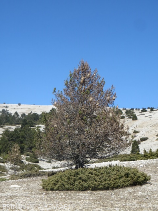 Défoliation totale de pins à crochets sur la face sud du Mont-Ventoux due à une forte pullulation de la processionnaire du pin