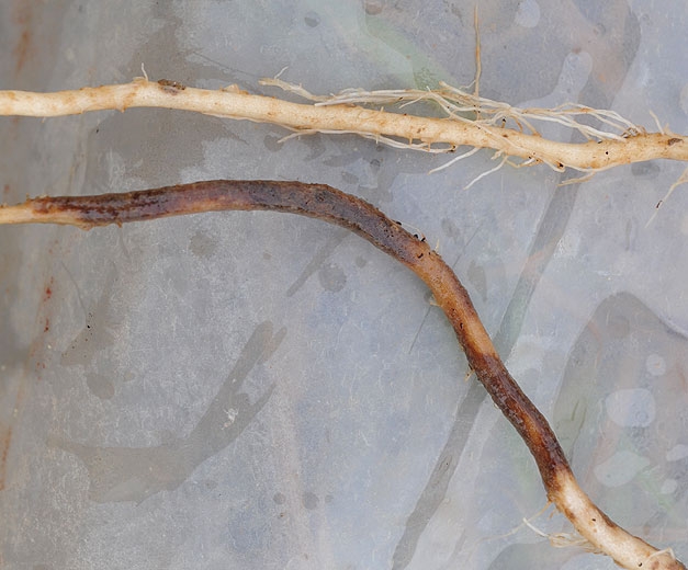 Le système racinaire des plantes malades est un organe quelque peu négligé par les observateurs en quête d’un diagnostic fiable. Soit ils omettent de le regarder, soit ils ne se mettent pas toujours en situation optimale pour apprécier son état sanitaire réel. Ne jamais oublier de l'observer, en particulier si un flétrissement foliaire (accompagné ou non d'un jaunissement), un dessèchement, voire un blocage du développement des plantes sont constatés.