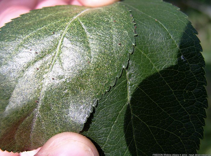 Les acariens rouges sont surtout présents à la face inférieure des feuilles. Les fortes attaques entraînent une diminution du calibre des fruits, de leur taux de sucre et peuvent défavoriser l’induction florale.