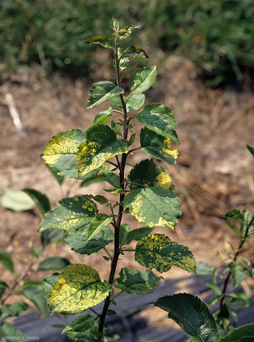 La mosaïque du pommier est assez facilement identifiable sur le feuillage de nombreuses variétés, en pépinière et en verger, au printemps, particulièrement sur les cultivars sensibles tels que Golden Delicious, Gala, Jonathan,… et leurs mutants ou hybrides.
