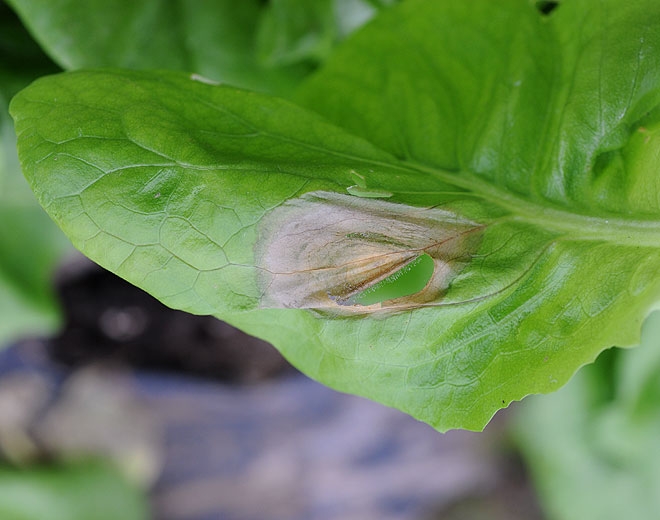 - Description : zones plus ou moins étendues de tissus altérés ou non (oïdiums) montrant en surface une sporulation pouvant présenter des couleurs et des apparences (poudreuse, duveteuse, veloutée, etc.) variées en fonction de l'agent pathogène sévissant. Ces taches sont préférenciellement observées sur les deux faces des feuilles des légumes, plus rarement sur les fruits, voire sur la tige et les pétioles.