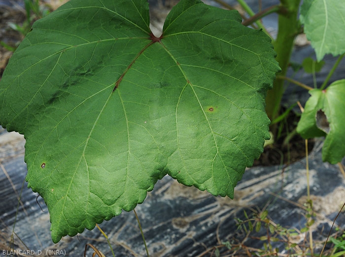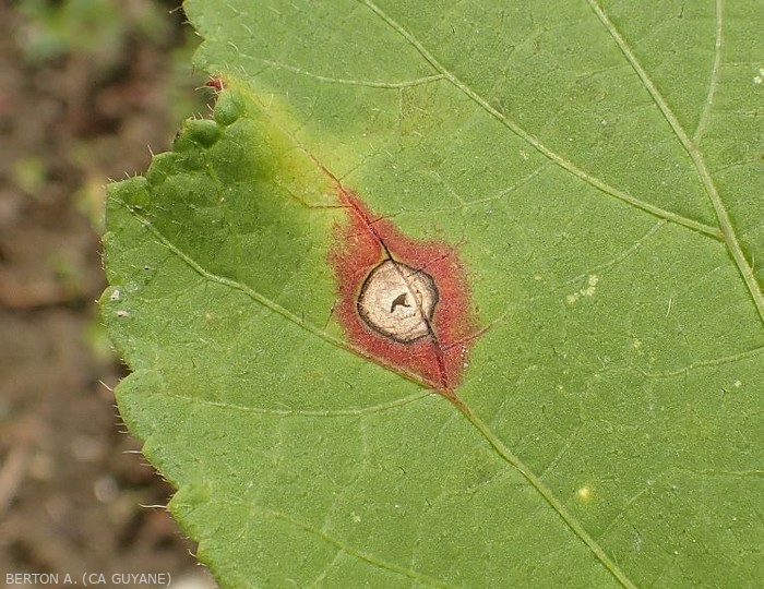 Les tissus dégradés sèchent, se fendent et finissent par tomber ; le limbe est plus ou moins troué (figure 2).