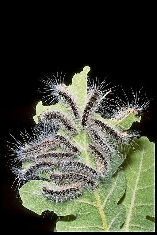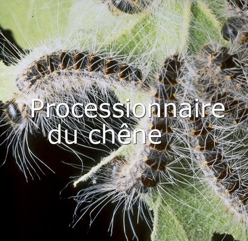 La femelle dépose ensuite une ponte unique contenant une centaine d’œufs sur des rameaux de chêne (cf. figure 4). Les œufs restent en place jusqu’au printemps suivant, et n’éclosent que vers le mois de mai, au moment du débourrement des chênes. Les larves (chenilles) traversent six stades successifs caractérisés par une augmentation croissante de leur taille.