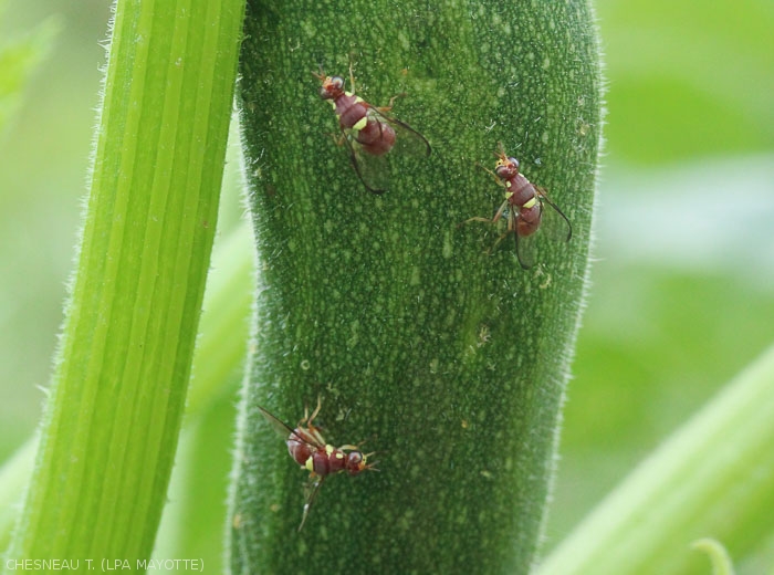 - Le piégeage de masse à base d'attractif alimentaire et d'insecticide n'est pour l'instant pas au point pour les mouches des Cucurbitacées.