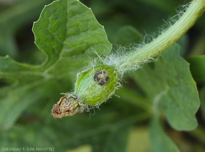 - Espèce oligophage qui s'attaque uniquement aux plantes de la famille des Cucurbitacées.