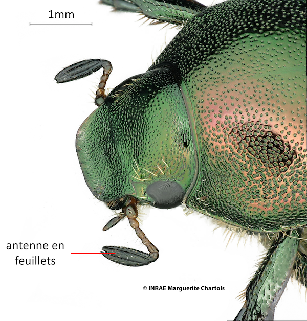 C’est un Scarabaeidae (famille des Scarabées), il possède des antennes terminées par des feuillets mobiles.