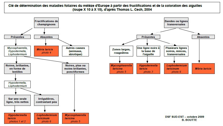 Mycosphaerella laricina (les taches brunes des aiguilles) :