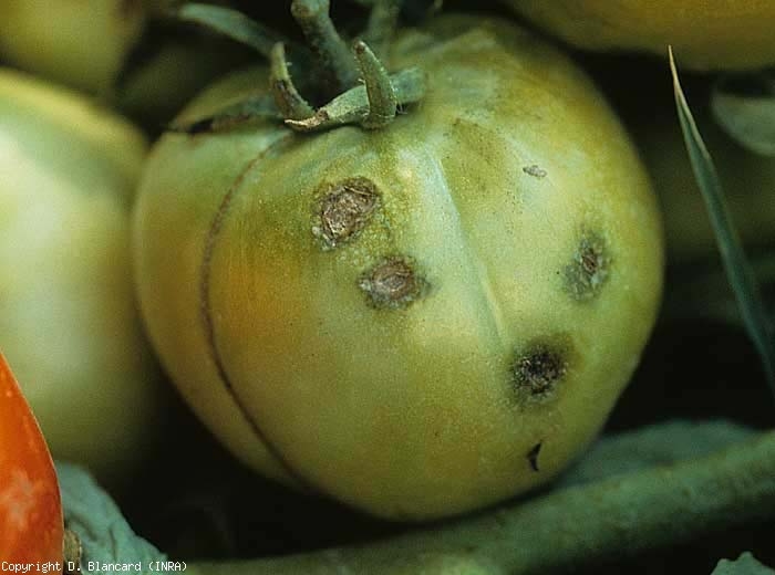 Ces lésions sur fruits peuvent être confondues avec les dégâts occasionnés par des impacts de grêlons. Ajoutons qu'il n'est pas rare que cette bactérie et Pseudomonas syringae pv. tomato sévissent en même temps dans les mêmes cultures en régions tempérées.