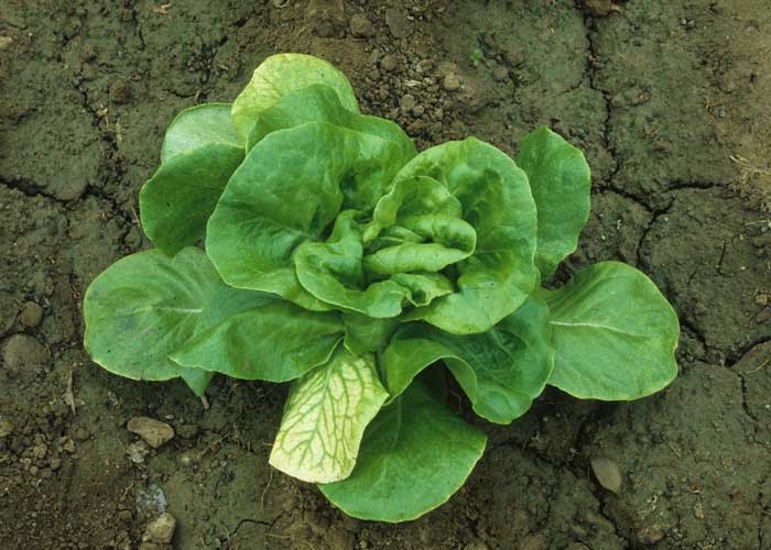 Eclaircissement des nervures et jaunissement des feuilles. Larges taches jaunes, internervaires, sur les feuilles basses. Les salades infectées précocement peuvent rester naines | Transmis par le puceron Aphis coreopsidis, selon le mode persistant |