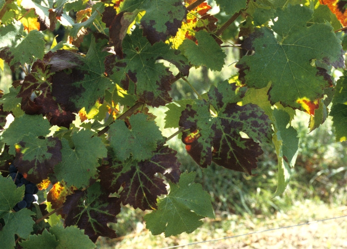 La <b>Flavescence dorée</b> fait plutôt rougir les feuilles de ce cépage noir.