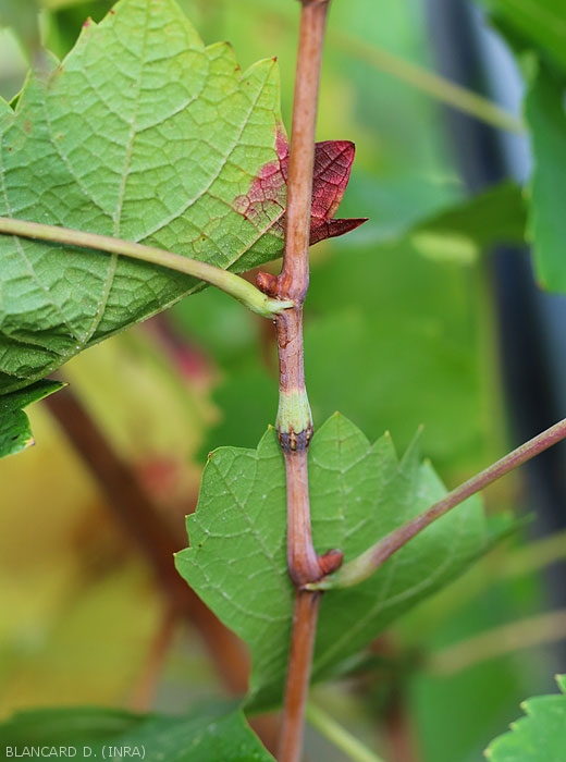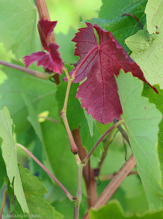Il danno non è grave sulle viti adulte ma è abbastanza spettacolare in autunno (foto). Si noti che quando i giovani ramoscelli sono colpiti, possono seccarsi completamente, specialmente sulle viti giovani.