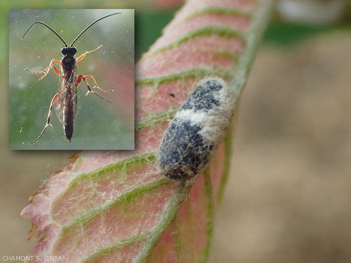 Negli endoparassitoidi (Figura 2), lo sviluppo larvale avviene interamente all'interno dell'ospite. Ciò implica alcuni adattamenti, in particolare a livello respiratorio e immunitario. Il corion embrionale così come l'esuvia larvale rimangono quindi attaccati alla parte posteriore del corpo, formando un legame tra la larva del parassitoide e la cuticola del suo ospite.