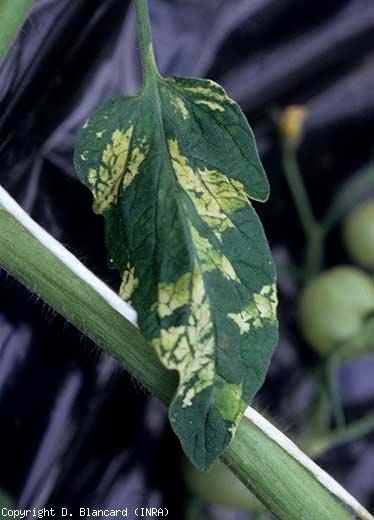 Des infections mixtes avec d'autres virus sévissant sous serre sont possibles. Nous avons pu observer dans la même serre et sur les mêmes plantes des co-infections entre le PepMV et le ToCV par exemple. Dans cette situation et en fonction de la période de l'année, l'identification de ces deux virus par simple observation visuelle est très difficile, surtout celle du PepMV.