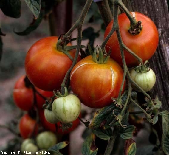 Flux d'eau trop important dans la plante et les fruits ; l'élasticité de l'épiderme de ces derniers n'est alors pas suffisante pour compenser leur brusque croissance. Ils finissent par se fendre, et plus ou moins éclater. Cette affection se manifeste particulièrement à la suite de brusques changements climatiques modifiant considérablement le taux de croissance des plantes, en particulier à la suite de périodes climatiques très chaudes avec des intensités de lumière importantes.