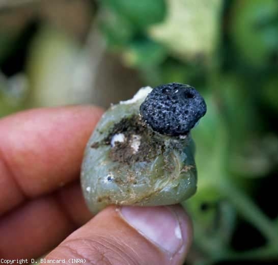 Anche le foglioline come i frutti (figura 7) sono interessate da un marciume umido e molle che provoca la disgregazione delle prime e la liquefazione delle seconde. Così i giovani frutti verdi subiscono grosse alterazioni umide e scure più o meno smerlate.