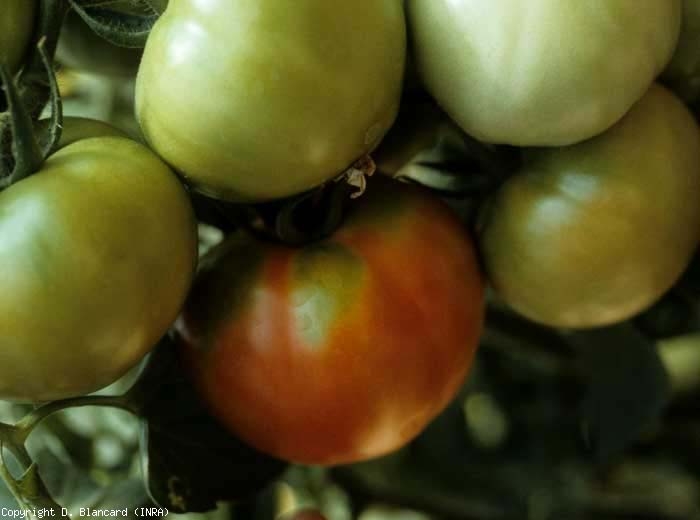 Possiamo anche vedere la caduta dei fiori . I frutti , a maturità, sono piccoli e talvolta più o meno irregolari. Inoltre subiscono colorazioni gialle (figura 3), talvolta ad anelli, nonché alterazioni necrotiche interne localizzate nei tessuti vascolari ( imbrunimento interno ). Questi sintomi possono essere presenti sui frutti verdi o maturi quando la pianta ha un aspetto sano. Quanto prima gli attacchi, tanto maggiore è l'impatto sui rendimenti; le infezioni tardive non hanno alcuna conseguenza per la produzione.