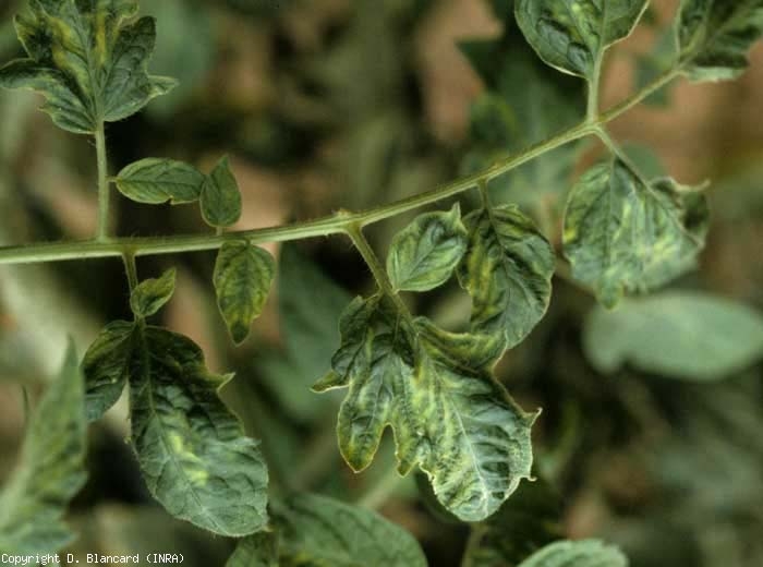 Come con TMV , i sintomi causati dal virus del mosaico del pomodoro (ToMV) sono molto vari e sono abbastanza comparabili. Oltre a provocare un rallentamento della crescita delle piante , sulle possono comparire varie anomalie di colorazione foglioline e sulle foglie : assottigliamento delle nervature, marezzatura, mosaico più o meno contrastato, nelle zone verdi, gialle o anche bianche (aucuba) (Figure 1 e 2). Anche la lama è più o meno goffrata e contorta. Come con TMV, le foglioline e le foglie sono filiformi in condizioni invernali, a causa della mancanza di luce nelle piante coltivate nei rifugi.