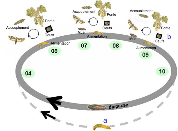 Eudemis attacca principalmente gli organi fruttiferi. La predazione nella prima generazione può essere spettacolare ma ha scarso effetto sul raccolto. D'altra parte, i danni della generazione di fine estate possono influenzare la qualità del vino. Questa nocività indiretta si osserva prima della raccolta. È dovuto a morsi e punture dell'acino che facilitano lo sviluppo di microrganismi sul grappolo. Oltre al rischio di marciume grigio ( Botrytis cinerea ), possono svilupparsi altri marciumi, come il marciume nero causato dall'Aspergillus nei vigneti , un fungo ocratossinogeno che pone notevoli problemi di salute.