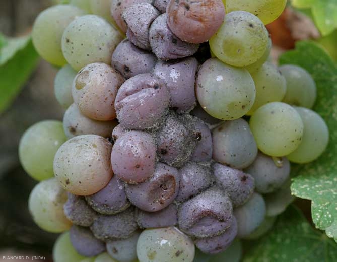 La Botrytis cinerea , agente del marciume grigio (figure 1 e 2), è in grado in determinate condizioni climatiche e idriche della vite di svilupparsi in una forma particolare detta " muffa nobile ". Quest'ultimo è all'origine dei grandi vini bianchi sciropposi francesi, in particolare quelli del sud-ovest (Montbazillac, Sauternes) ottenuti dai vitigni Sémillon (figure da 3 a 7) e Sauvignon (figure da 8 a 17), o da grano selezioni nobili Chenin de Loire o anche Gewurztraminer, Pinot Gris e Riesling d'Alsace. È anche associato ad alcune produzioni tedesche, austriache, ungheresi o svizzere in Europa.